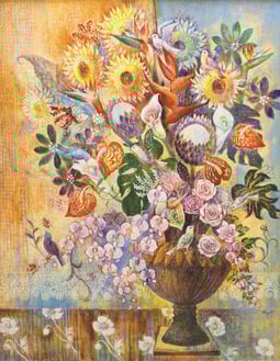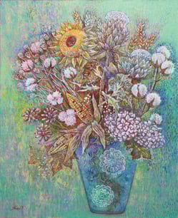 アンティチョークとドライフラワーを組み合わせ描いた作品