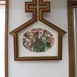 山本隆志 氏との初めてのコラボレーションです。山本隆志 氏の作品の特徴は変形額です。簡単にはとてもはマネの出来ない特徴ある額縁です。下にあります教会の形をした額縁は、山本氏が日本のコンペティションにおいて優勝した作品です。
